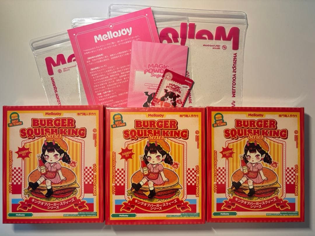 Mellojoy カップケーキか?(ブラインド)3個セットー触り心地は、ぱんぱんパンケーキかもちもちもち配信で購入した分で目当ての物が出たため出品します。外側のシュリンクに届いた時点で穴(破れ)や外箱の潰れがありました。(2.3枚目の画像)メロジョイのピンクのダンボールに入れて、ビリビリも開けていただけます。シュリンク付き未開封のままで発送いたします。移し替え用のロゴ入り袋3つ、マジックパウダー・説明書・マジックパウダーの使い方各1つずつも同封いたします。初期不良の対応は致しかねますのでご了承ください。⚠️必読⚠️海外製品のため初期傷や汚れ、細かいほこり等が付着している場合がございます。未開封で発送するため、中身の確認は出来ていませんので何か不備があった場合でも対応出来ませんのでご了承下さいませ。※キャンセル申請されても対応出来かねます。こちらはブラインド商品で未開封の為、中身は分かりません。サーチ行為なども行っていません。中身で評価を下げるなどはご遠慮ください。あくまで、開封することを楽しんで頂けたらと思います。新品未使用ですが、神経質な方や完璧を求める方は購入をご遠慮ください。即購入⭕️早い者勝ちです!!#mellojoy #メロジョイ #diyjojo #スクイーズ #ブラインドボックス