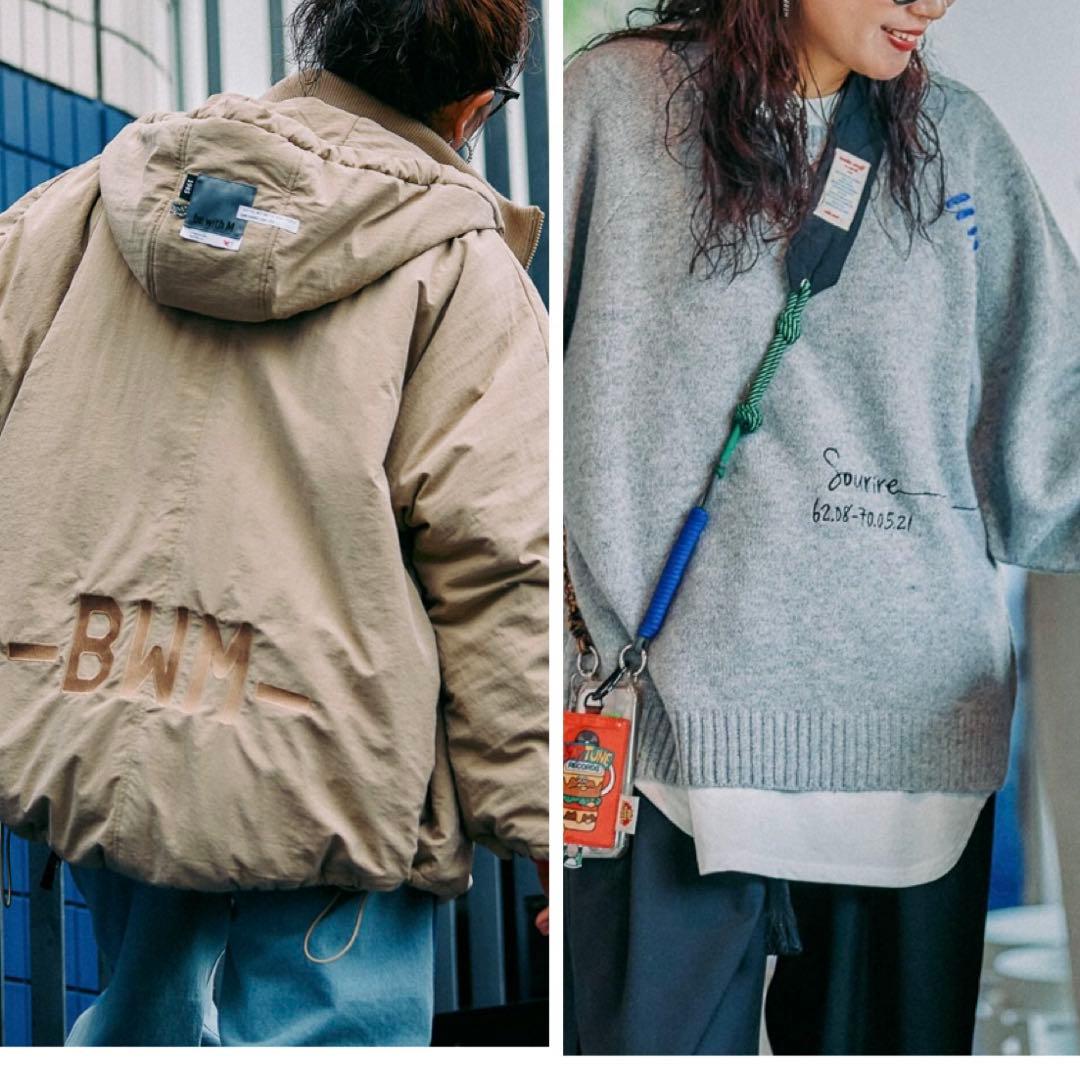 - XLの赤を購入しました。ダボっとした感じで着たかったのですが、1番大きいXLでも、写真ほどダボっとはしていませんでした。写真のモデルさんが痩せてて小さいからかな?(ちなみに私は159cm 52kgです) 生地は、写真で見ると結構厚そうに見えますが、実際は薄めです。中に着込めば冬場にも活躍しそうです。