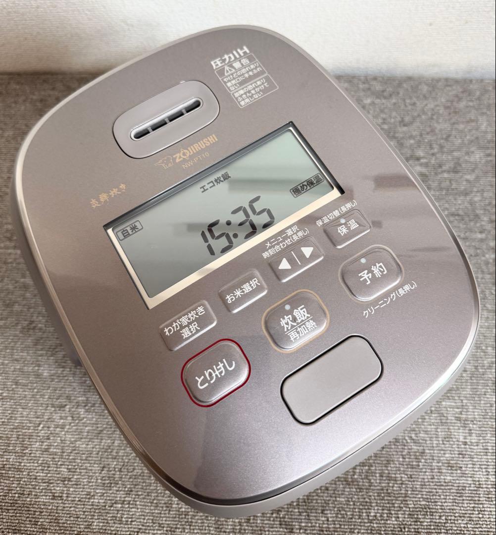 Panasonic SR-M10A(ブラック)炊飯器2023年製ご覧いただきありがとうございます。商品説明可変圧力IHジャー炊飯器SR-M10A目指したのは、かまどを超える炊き技。激しい沸騰と熱対流を起こしお米をおどらせ、一粒一粒の旨みを引き出す「おどり炊き」シリーズ。高圧からの急減圧時、爆発的な沸騰力で熱を伝える「おどり炊き(急減圧バルブ)」遠赤ダイヤモンドハードコート搭載でふっくら炊き上げ「ダイヤモンド竈(かまど)釜(底面ディンプル)」より使いやすく「りれき呼び出し機能」●炊飯容量:0.5~5.5合炊き●サイズ:幅27.1×奥行35.2×高さ23.6cm●質量(kg):6.5●消費電力:1200(ワット)動作確認済みです。状態は写真にてご確認お願いいたします。中古品にご理解頂ける方のみご購入お願いいたします。神経質な方はご購入をご遠慮ください。よろしくお願いいたします。パナソニック モデル名···SR-M10A炊飯量···5.5合タイプ···圧力IH炊飯器炊飯機能···早炊き,エコ炊き